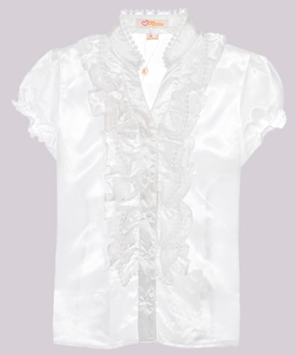 Give her a chic and playful look with this blouse from Ali & Kris. It features a full button placket, cap sleeves, and elastic shirring in back. A dramatic ruffle and crochet detail at the neckline make it dressy enough for any school or family occasion. 100% Polyester Machine Wash Cold Made in China